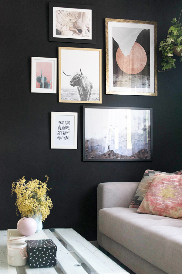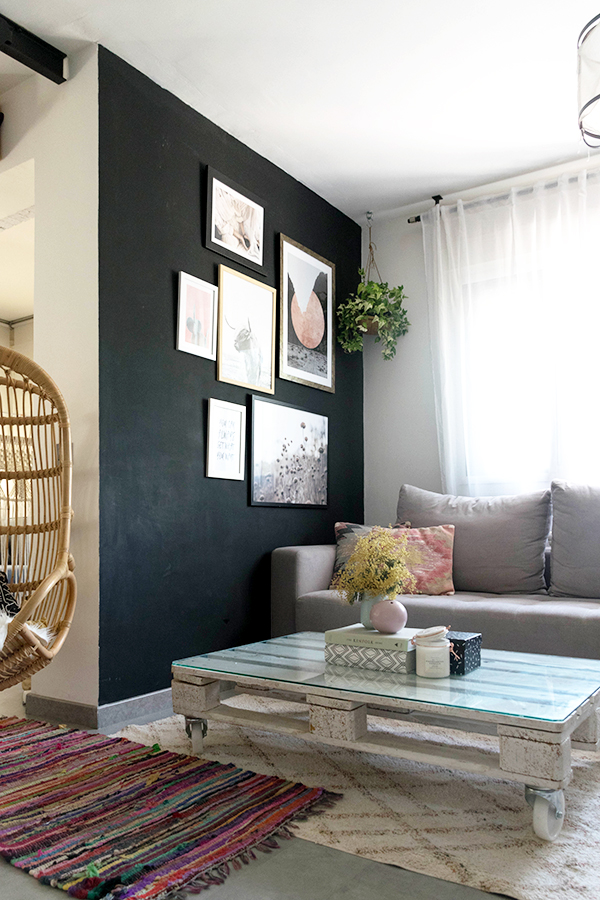 Hoy en el blog, os quiero mostrar el cambio que he hecho en una de las paredes del salón, mas concretamente la pared negra. En esta pared puse provisionalmente una baldita porta marcos de Ikea con una lamina de Desenio preciosa, pero sabia que no era definitivo porque me parecía un poco sosa, aunque la lamina tenia mucha personalidad, me faltaba algo….