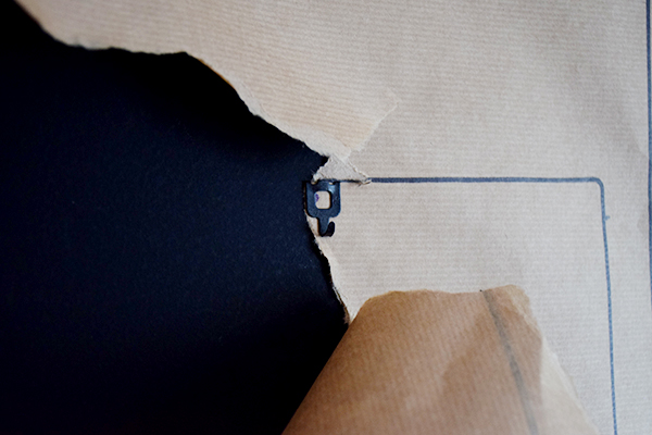 Con ayuda de un martillo vamos poniendo todos los cuelga fáciles en las marcas sobre el propio papel.