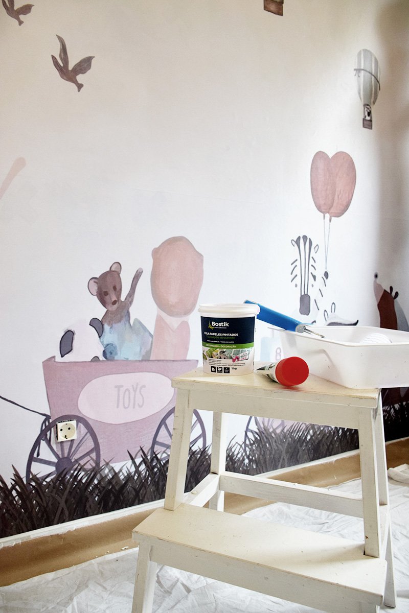 Para el pegamento escogimos este lote de adhesivos de la marca Bostik y la verdad que nos funcionó muy bien, sólo nos hizo falta la cantidad que veis en la foto para cubrir toda una pared de casi 6m2.