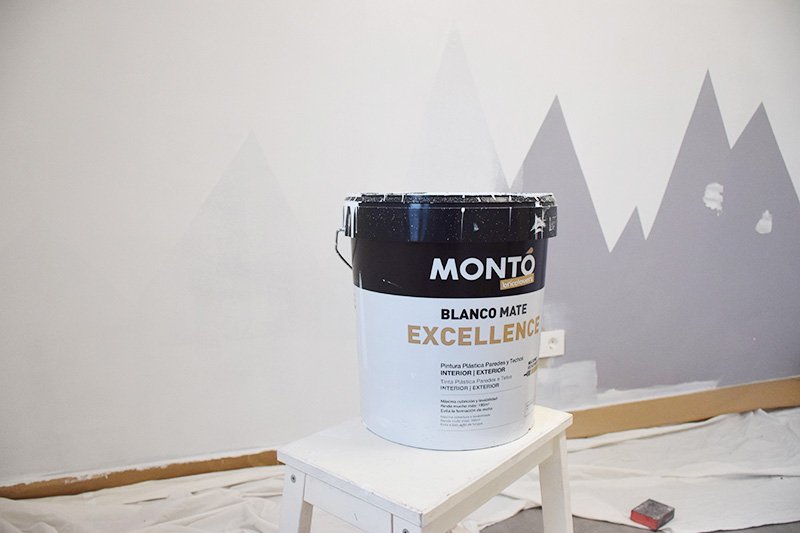 Además al ser lavable y anti moho me parece mucho mas que perfecto para el dormitorio de los niños. Es muy cubriente y con dos manos fue suficiente para tapar el dibujo de las montañas.