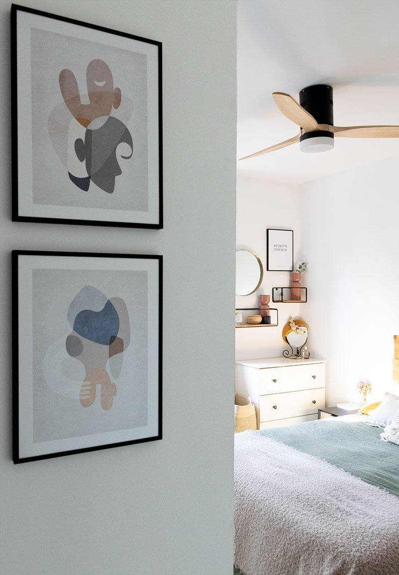 Tenemos una pared que separa el aseo del dormitorio, larga y estrecha, es la que te encuentras de morros nada mas entrar y esa pared me pedía gritos unos cuadros, por fin la he hecho caso porque ya he encontrado las laminas perfectas para ese frontal.