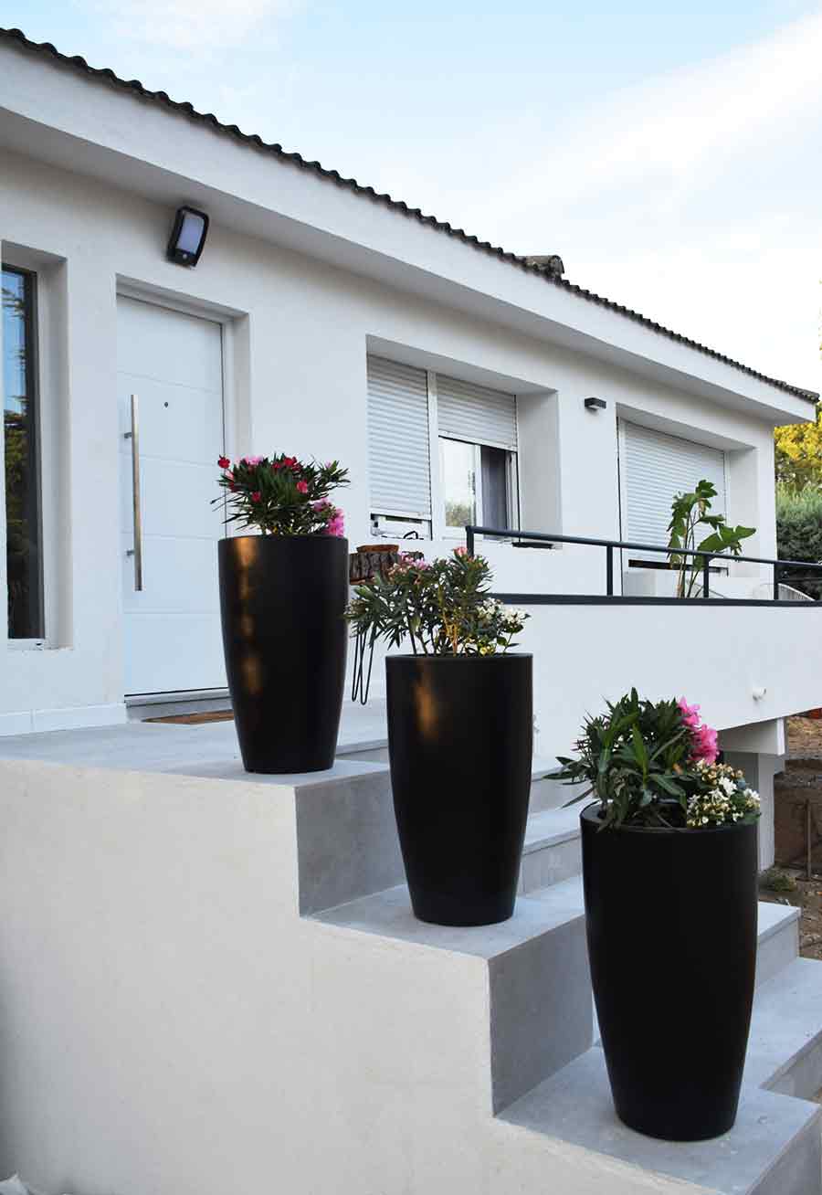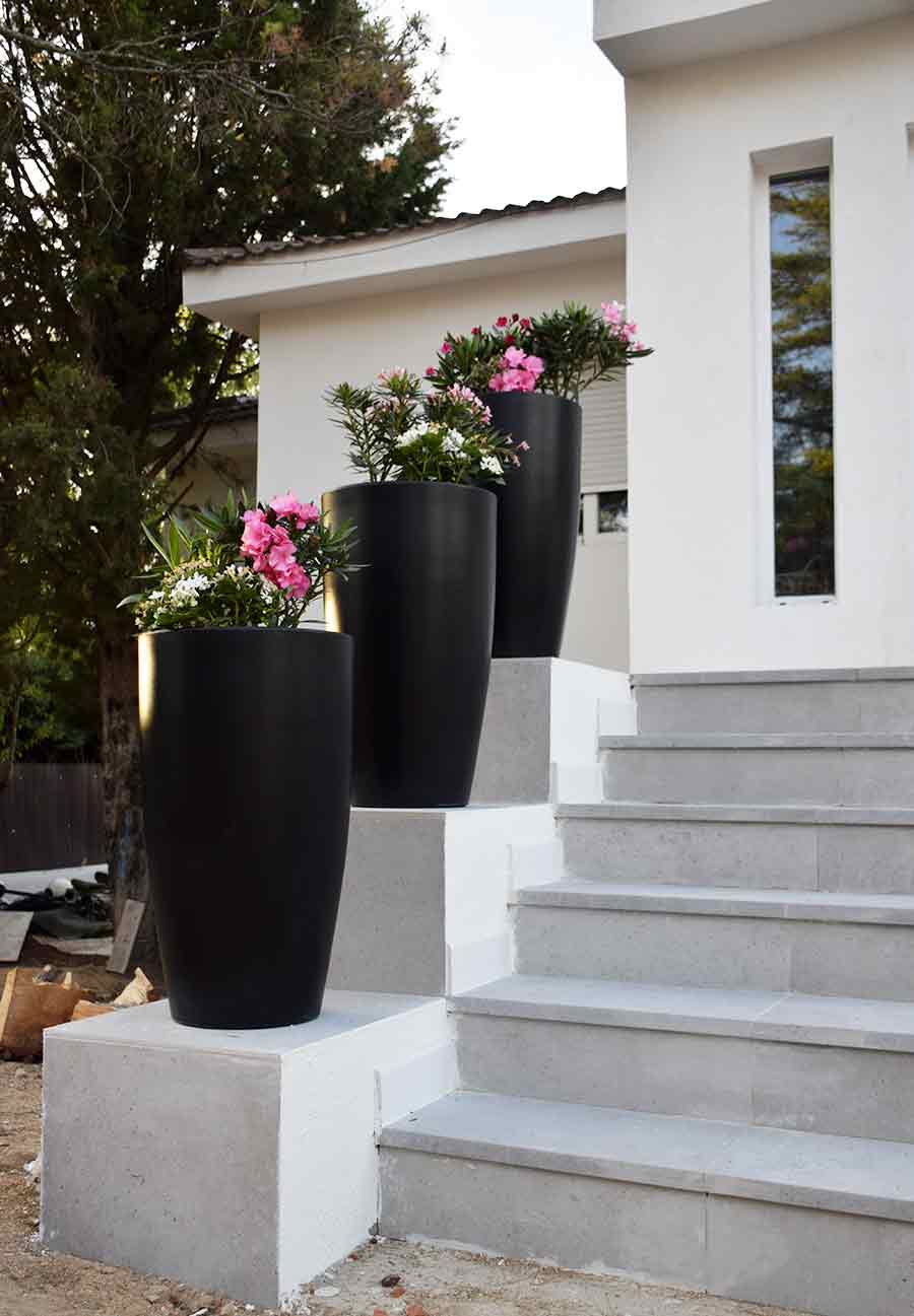 Este macetero grande es importante que sea alto, para evitar la sensación de vertigo en la escalera y que sirva de protección.