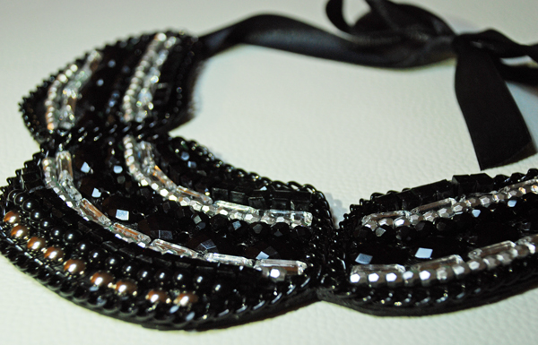 Hace menos de un mes, me escribió Alex, para pedirme el collar babero Greta, pero ella quería otra versión… le apetecía ese mismo modelo en colores negros y plateados. Pensé que era buena idea y que podía quedar muy bonito, así que compré el material necesario y me puse a ello.