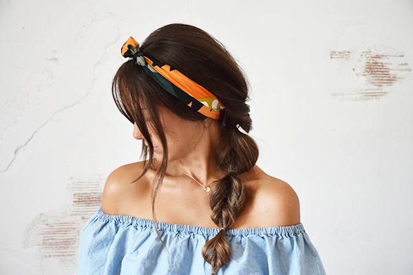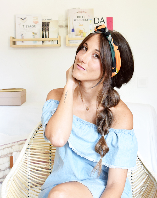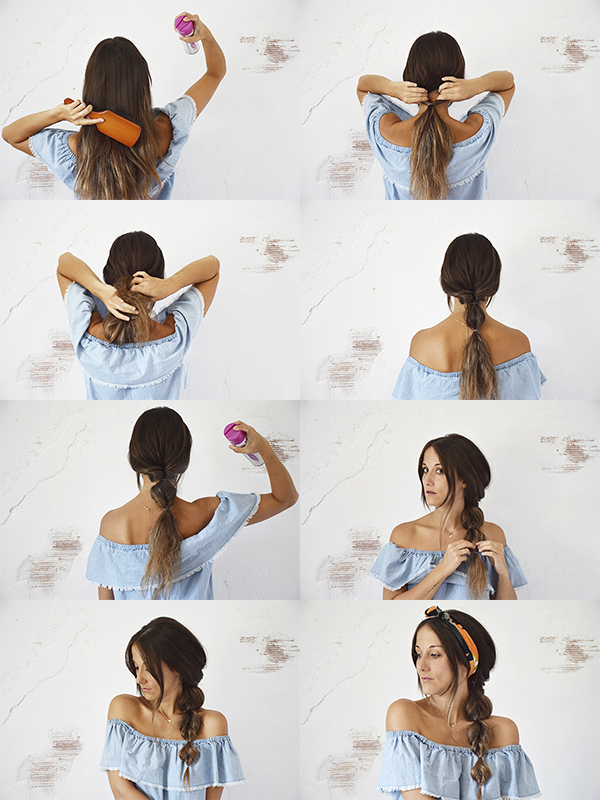 Ya tenemos nuestra trenza lista, podemos dejarla así o darle un toque con un pañuelo. Con lazada en la cabeza…..