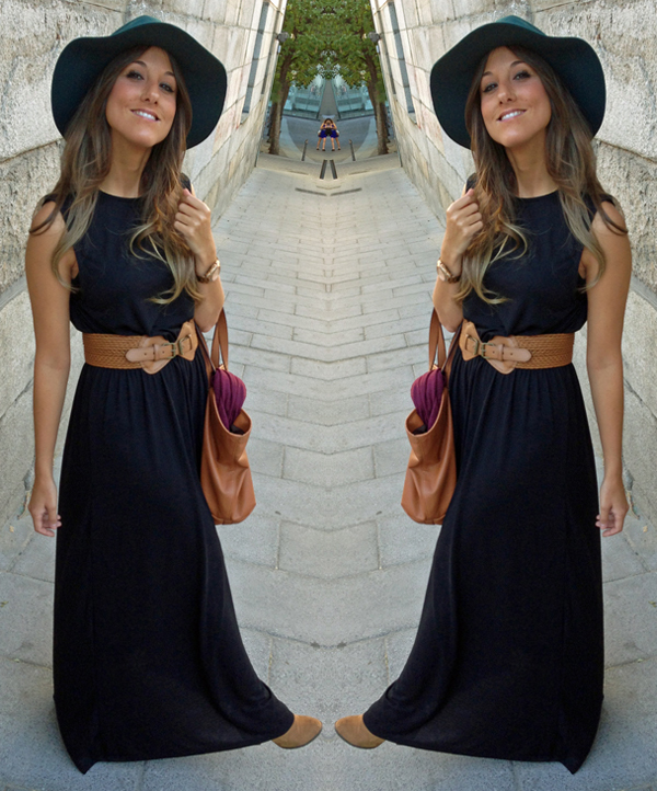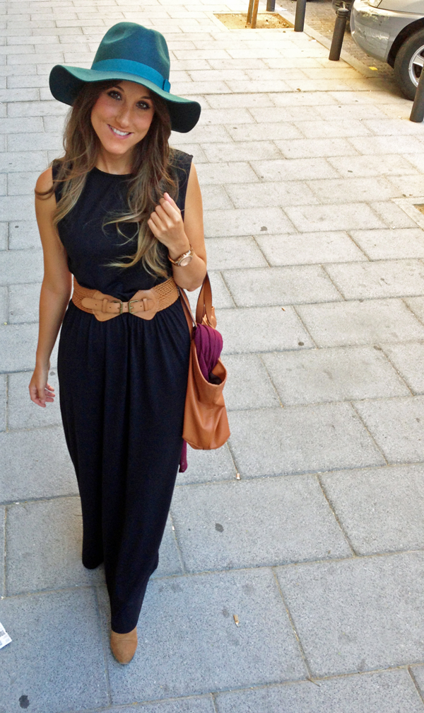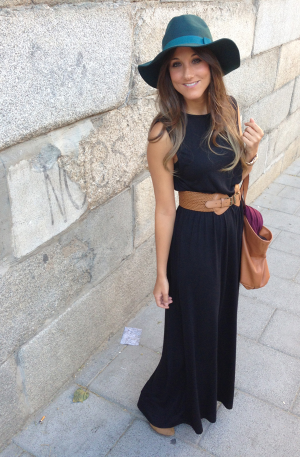 Para una tarde tan movidita, elegí un comodíiiisimo vestido largo de algodón negro, botines, un bolso tote (para meter todo lo que pille) y mi última adquisición, esta pamela en un color verde agua precioso.