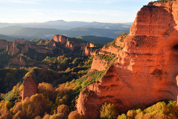 El contraste de colores es alucinante, el color arcilloso de las médulas, el verde de la vegetación y la mezcla de colores de las hojas crea un paisaje precioso y perfecto para los amantes de la fotografía.