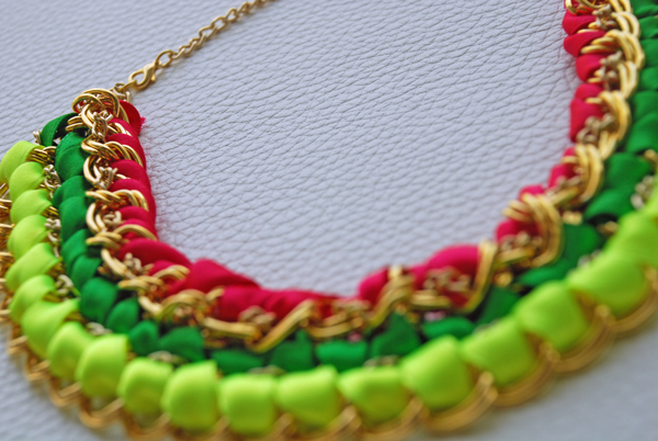 Aunque no lo parezca me encanta esta tendencia de colores flúor,me parece muy original y animado además de cara al verano cuando estemos morenitas tiene que quedar precioso.Muy buen gusto con el collar,superoriginal me encanta…