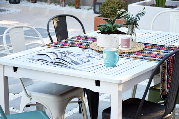 Ya llegó!! ya esta aquí!! la reforma de mi jardín!! 😉 Pero no sólo os voy a enseñar detalles decorativos y el antes y después, también quiero enseñaros como pinté la mesa de blanco y como preparar una bonita tabla de quesos, encurtidos y fiambres para un rico picoteo… Vamos??