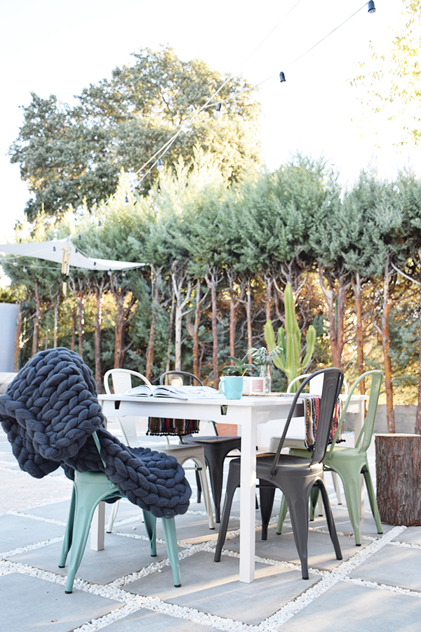 Como veis en la foto el plaid que hice en el anterior post también queda fenomenal como pasillo de mesa, así que definitivamente le he buscado su sitio perfecto! 😉 Las sillas son las Tolix, son de Leroy Merlin con unos colores pastel preciosos y estos en azul, verde, blanco y grafito me enamoraron y creo que quedan perfectos con el resto…