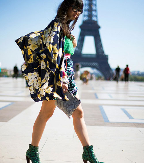 Esta inspiración la podemos encontrar plasmada en kimonos, blusas, pantalones……Prendas sueltas y amplias, con llamativos colores propios de los dibujos orientales.