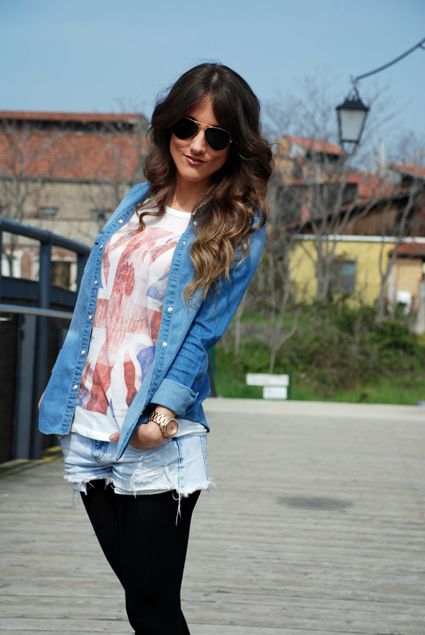 Como veis para mi segundo día también elegí un look cómodo pero esta vez un poco mas ligero, con shorts desgastados, camiseta estampada y camisa vaquera por si refrescaba…… (modo abuela on) y por supuestísimo mis Converse.