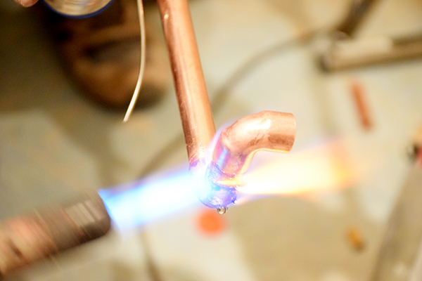 Tendremos que llevar ambos tubos (tubería “roja” y tubería “azul” ) hacia el radiador para la entrada y salida del agua. Aquí es donde necesitaremos que los tubos estén bien secos (antes hay que cortar y vaciar el circuito de agua de toda la casa) y con ayuda de un codo y soplete uniremos los tubos y sacaremos una nueva salida.
