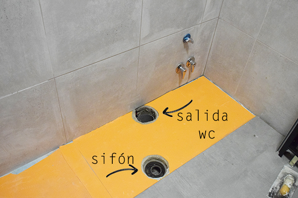Y así quedó colocado! como podéis ver en alguna foto, también hicimos la tapa del sifón del mismo material que el suelo para que resultara mas disimulado.