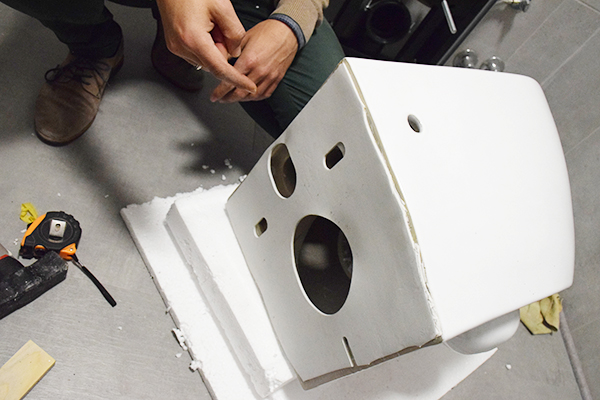 Primero tendremos que quitar el inodoro antiguo. Nuestro wc tiene la tubería de evacuación separada de la pared y para el modelo de wc que escogimos tuvimos que desplazarla lo mas pegada a la pared posible porque al estar suspendido sobre la cisterna el desague se hace por la misma. Si escogeis un modelo con la tubería de evacuación a la misma distancia no tendreis que hacer casi nada, simplemente cambiar uno por otro….