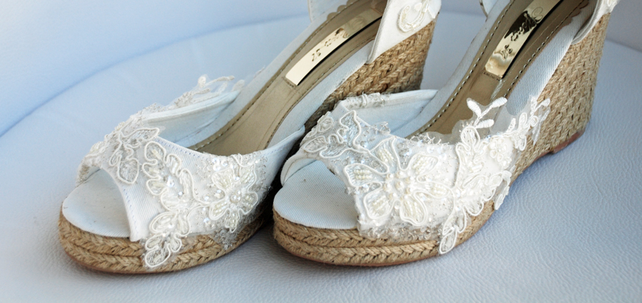 Como ya visteis en uno de mis anteriores posts….. le modifiqué unas sandalias de cuña en unas sandalias de novia.… como veis el resultado quedó genial e ideal para el vestido que iba a llevar.