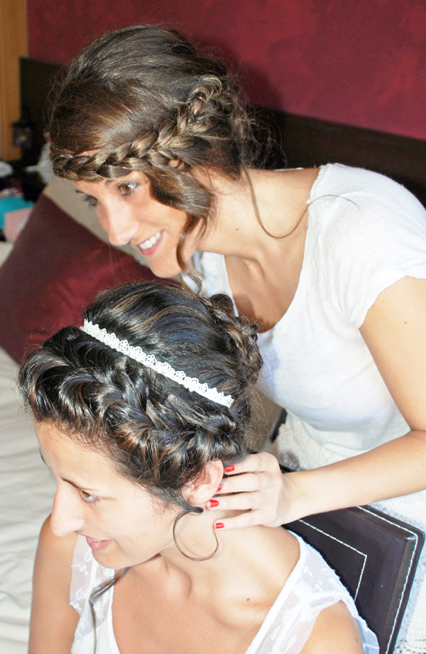 Para la celebración familiar escogimos un recogido romántico adornado con dos diademas de encaje también made in Fruto Samore! (según dice ella, no hay nada mejor que tener una hermana apañada….)
