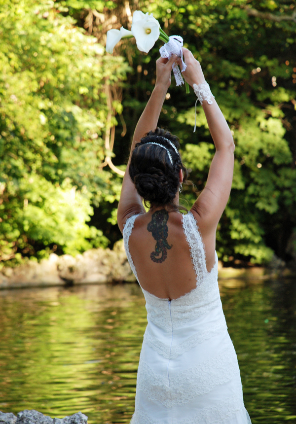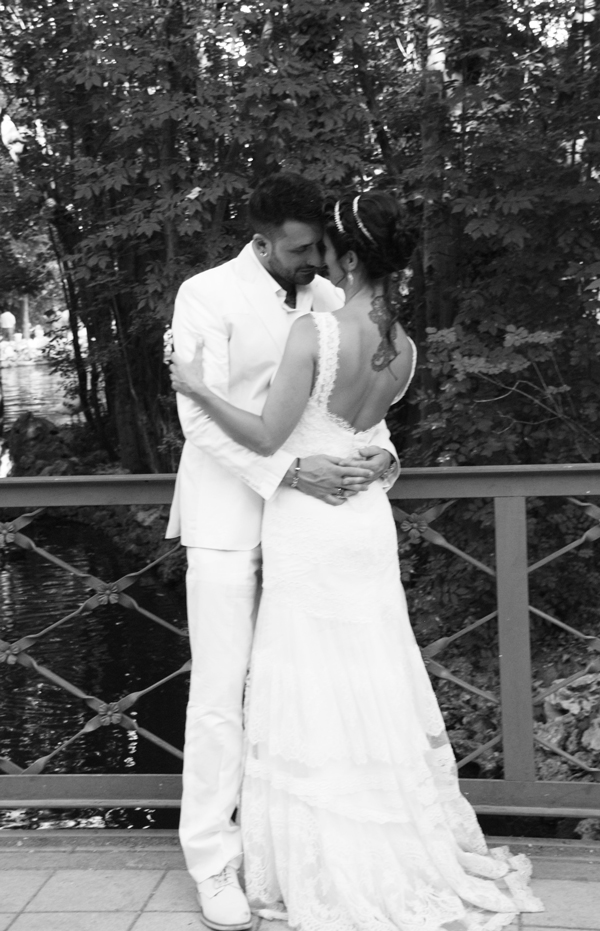 Que emocionante el momento “vestir a la novia”….. precioso vestido de encaje que le permitió lucir uno de los tatuajes que tiene hechos por su novio y el que ahora es su marido…….