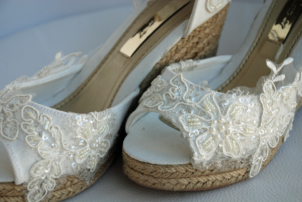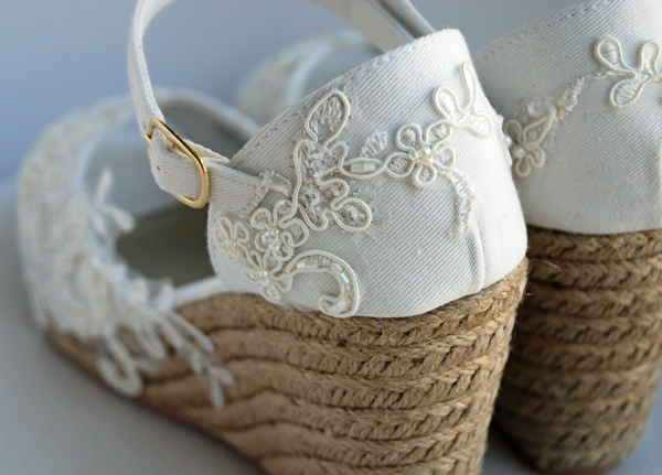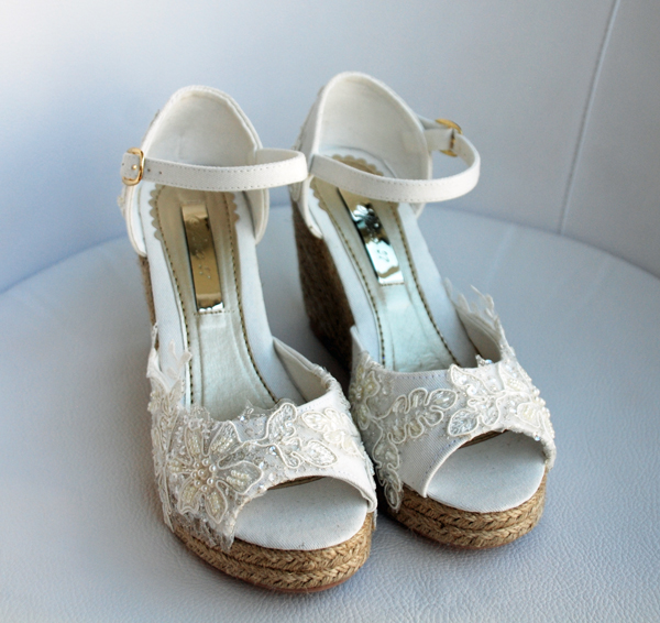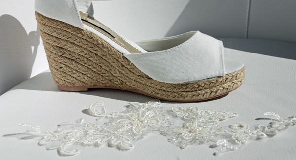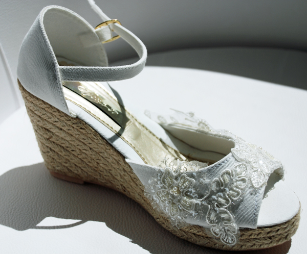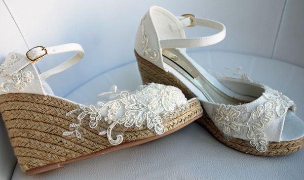 Os quiero mostrar como hemos hemos convertido unas cuñas sencillas en unas preciosas cuñas para novia.