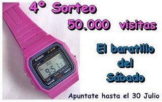 Y es que el Baratillo del Sabado sortea por haber tenido 50.000 visitas un Reloj Casio Pink, esta chulísimo y yo ya he participado. (a ver si tengo suerte)