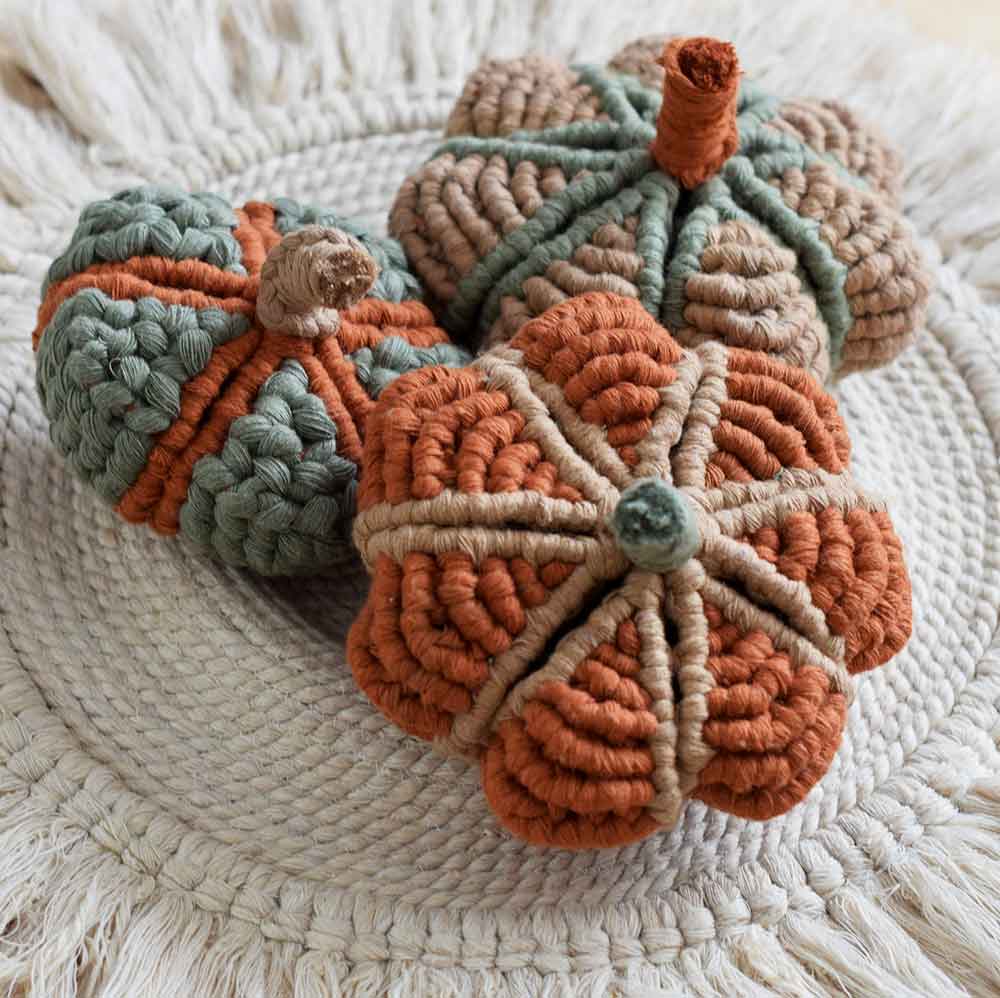 Curso Online express para realizar estas calabazas tricolor a través de nuestra plataforma para aprender macramé Macrademia®.
