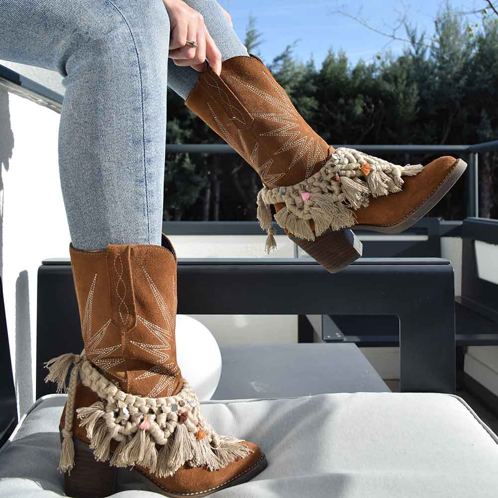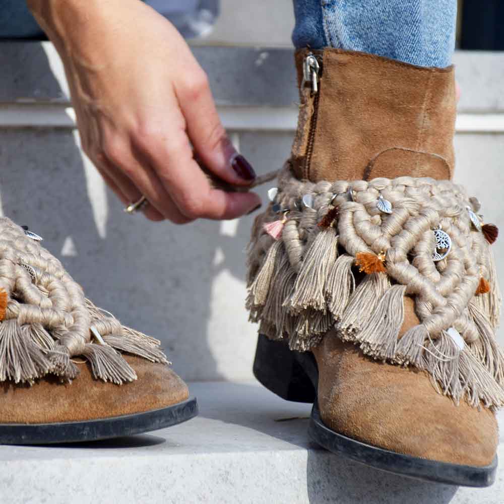 Crea con nuestro curso online express estos cubrebotas boho y customiza tus propias botas camperas.
