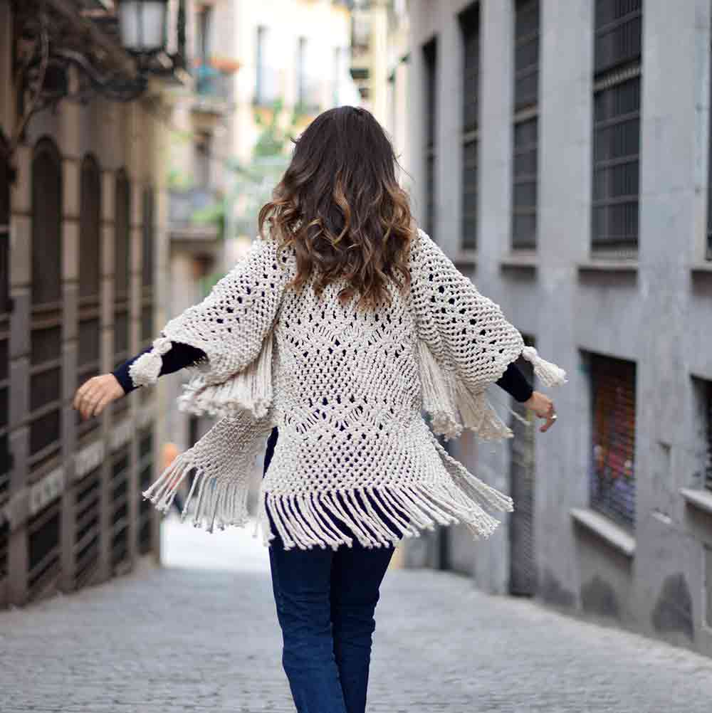 Destaca con un estilo bohemio y habilidades en macramé siguiendo este Curso Online de Macramé Moderno para crear desde cero este kimono “Velvet”.