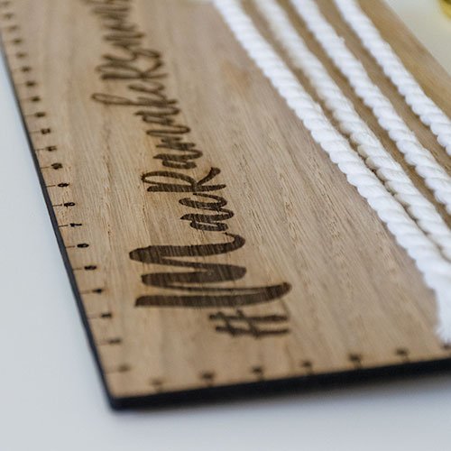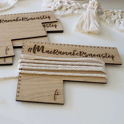 Tan sencillo como enrollar tu cuerda de macramé las veces necesarias (según el número de flecos que quieras montar) y … ¡magia! todos iguales y a la vez.
