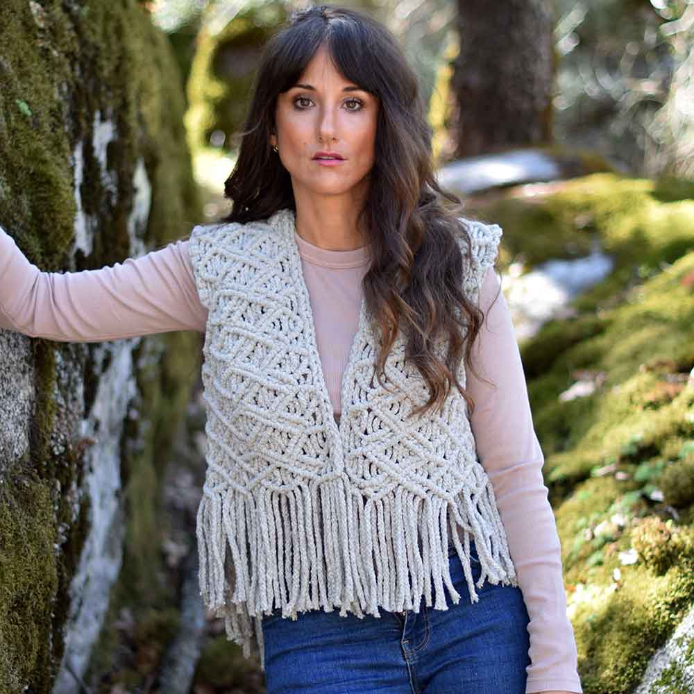 A través de diversas lecciones irás generando un chaleco de macramé único, diferente y moderno.