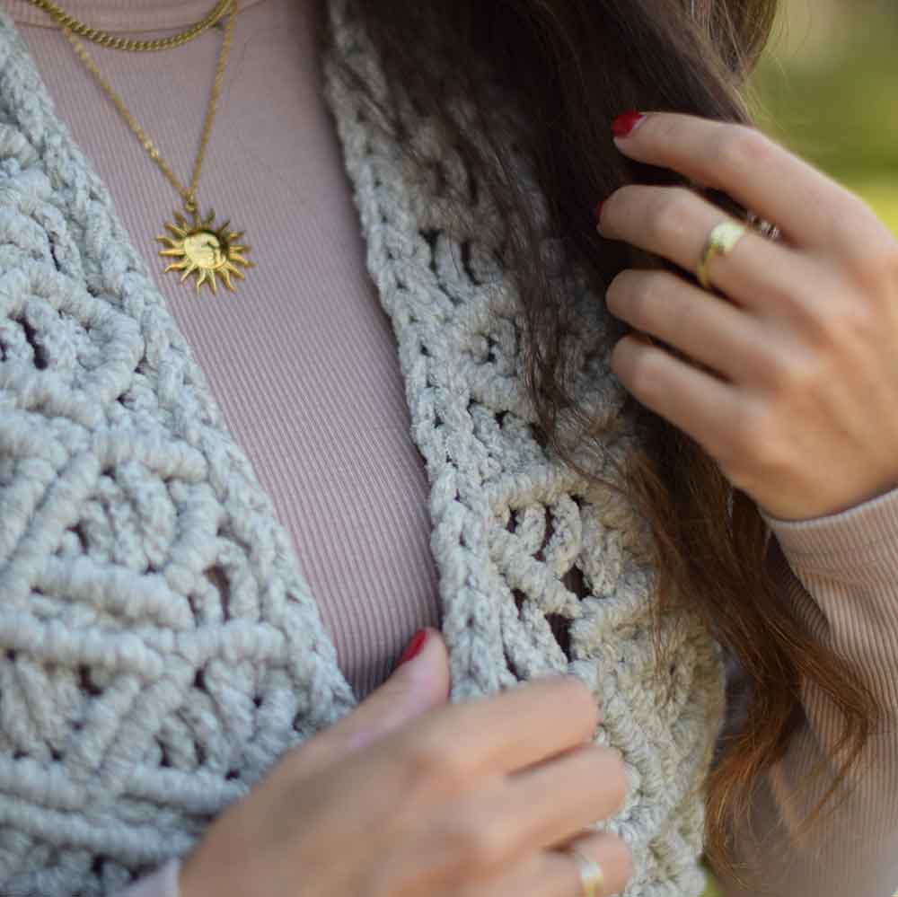 En el curso te enseño durante casi 2 horas y media a confeccionar este chaleco de macramé moderno, con variaciones para que siempre puedas adaptarlo a tu gusto.