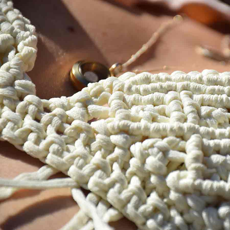 Por sus características especiales, el diseño de este kit únicamente puede tejerse con el nuevo cordón de macramé técnico especial para baño Cordón Beach ’22.
