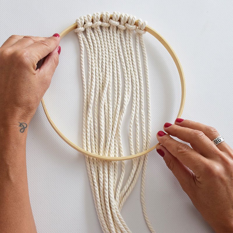 Este kit incluye todo lo necesario para realizar el atrapasueños más elegante del macramé.