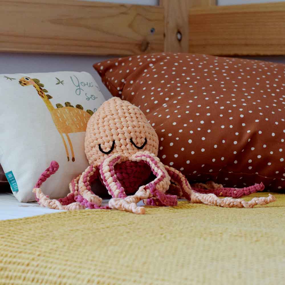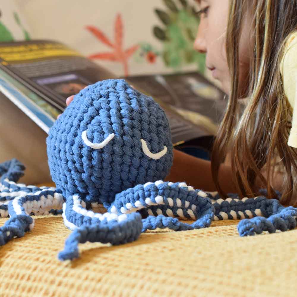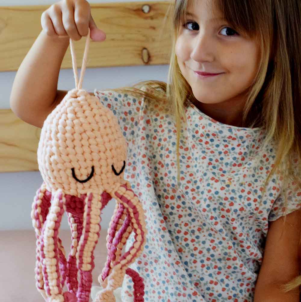 Durante la hora y media de duración del curso, y a través de diversas lecciones irás generando un “Pulpo al Macramé” tan especial como único.