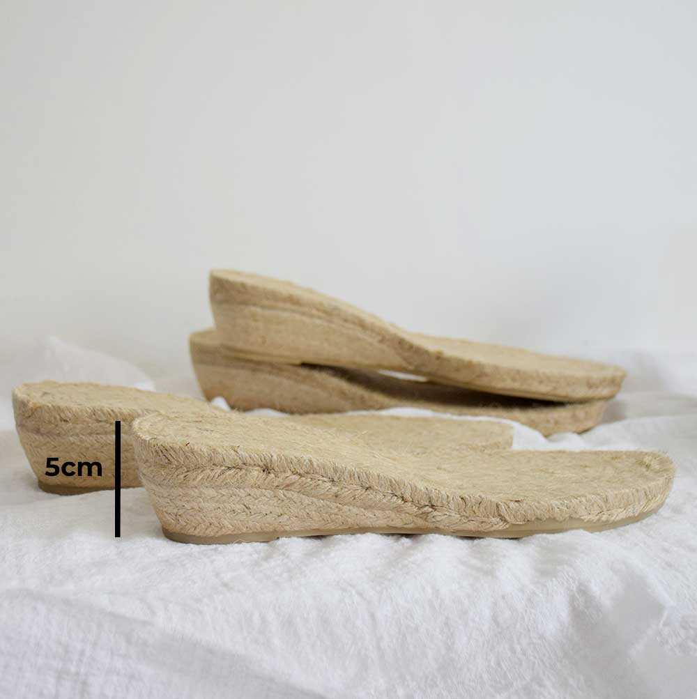 Crea y customiza tus propias alpargatas de macramé con estas suelas de yute y cuña de 5 cm.