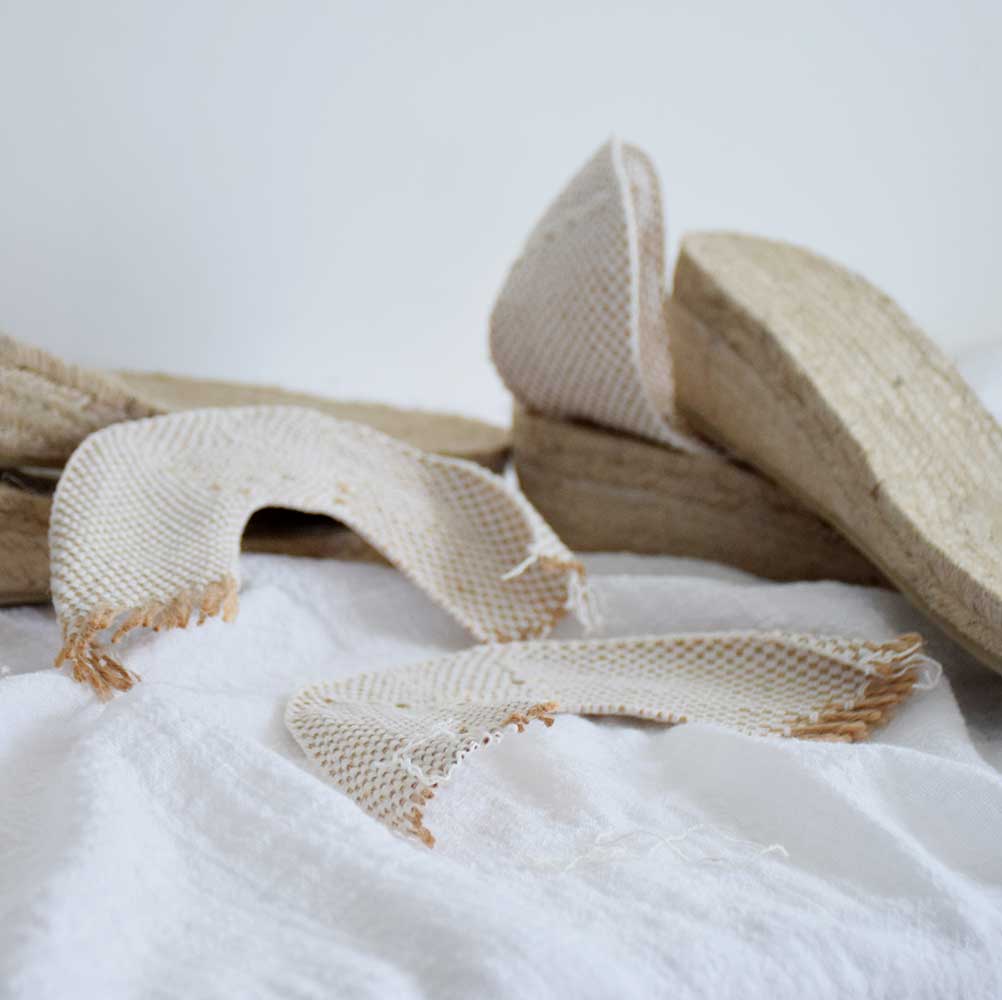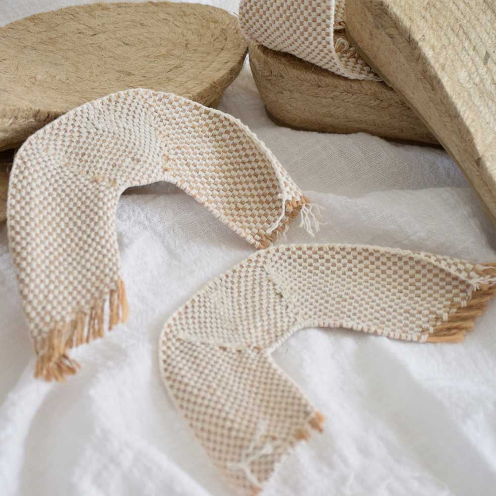 Crea tu propia alpargata, cómoda y ajustada con estas taloneras de tela en color natural.