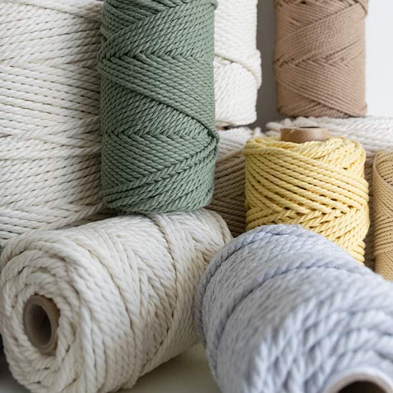 Una cuerda especial para macramé compuesta por 3 cabos de hilo de algodón, 100% sostenible y certificado.