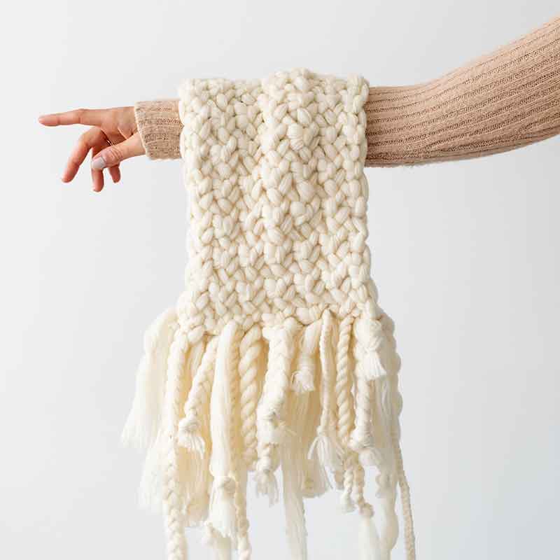 Aprenderás a crear una bonita trama y la posibilidad de hacer macramé con lana gruesa.