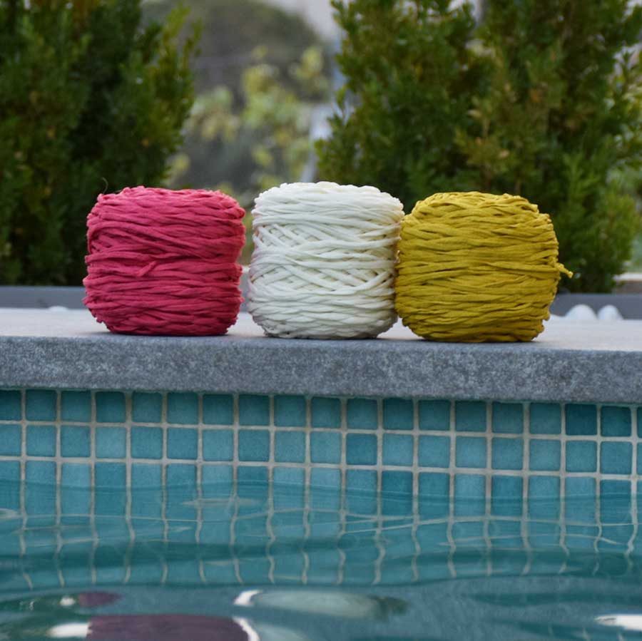 Por sus características especiales, el diseño de este kit únicamente puede tejerse con el nuevo cordón de macramé técnico especial para baño Cordón Beach ’22.