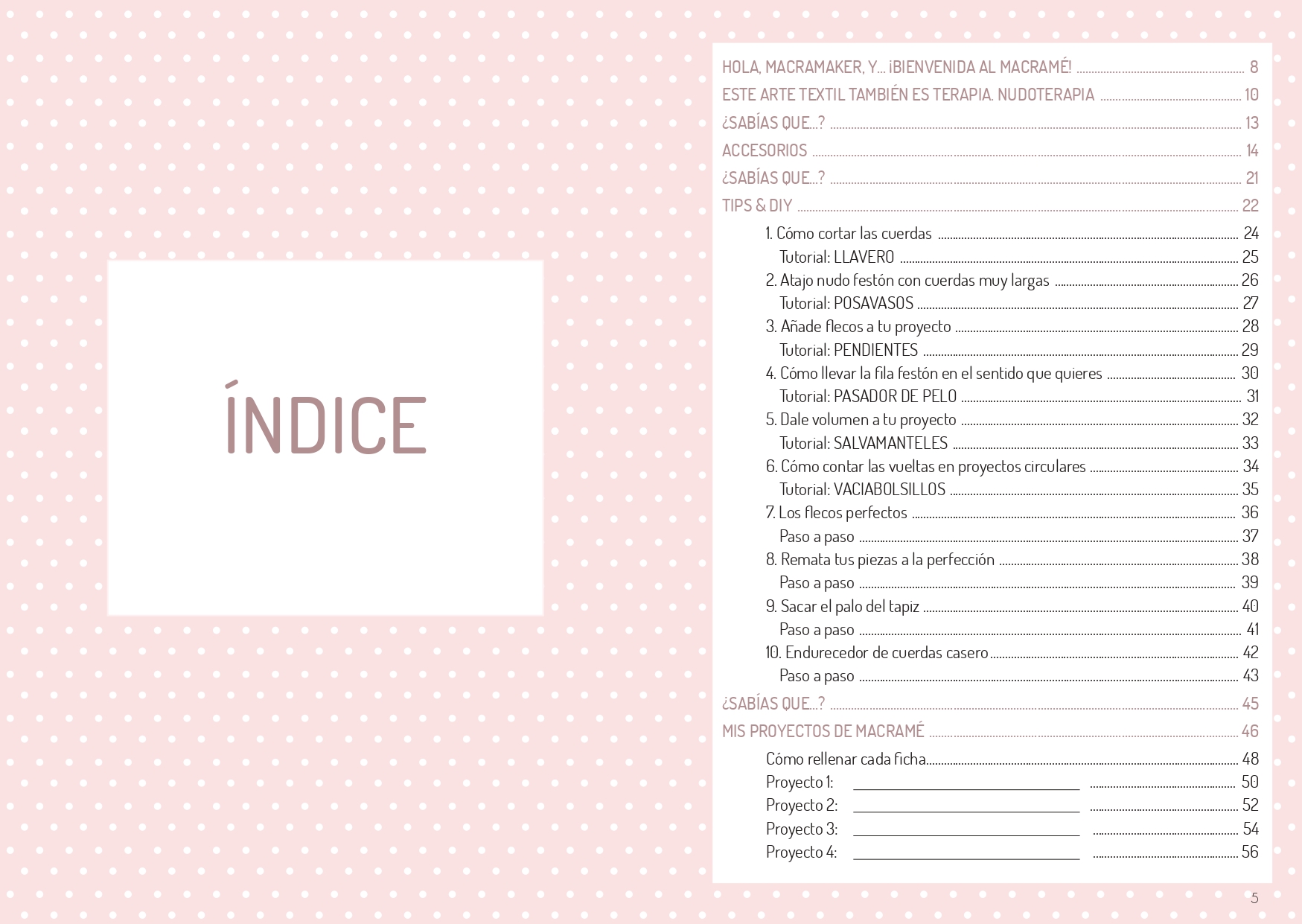 Donde aprendes todo lo que yo sé sobre macramé. (este no es un libro de proyectos). Y gracias a sus 50 fichas de macramé puedes ir apuntando absolutamente todos los proyectos que realices, porque te aseguro que esto es un vicio, un vicio muy sano.