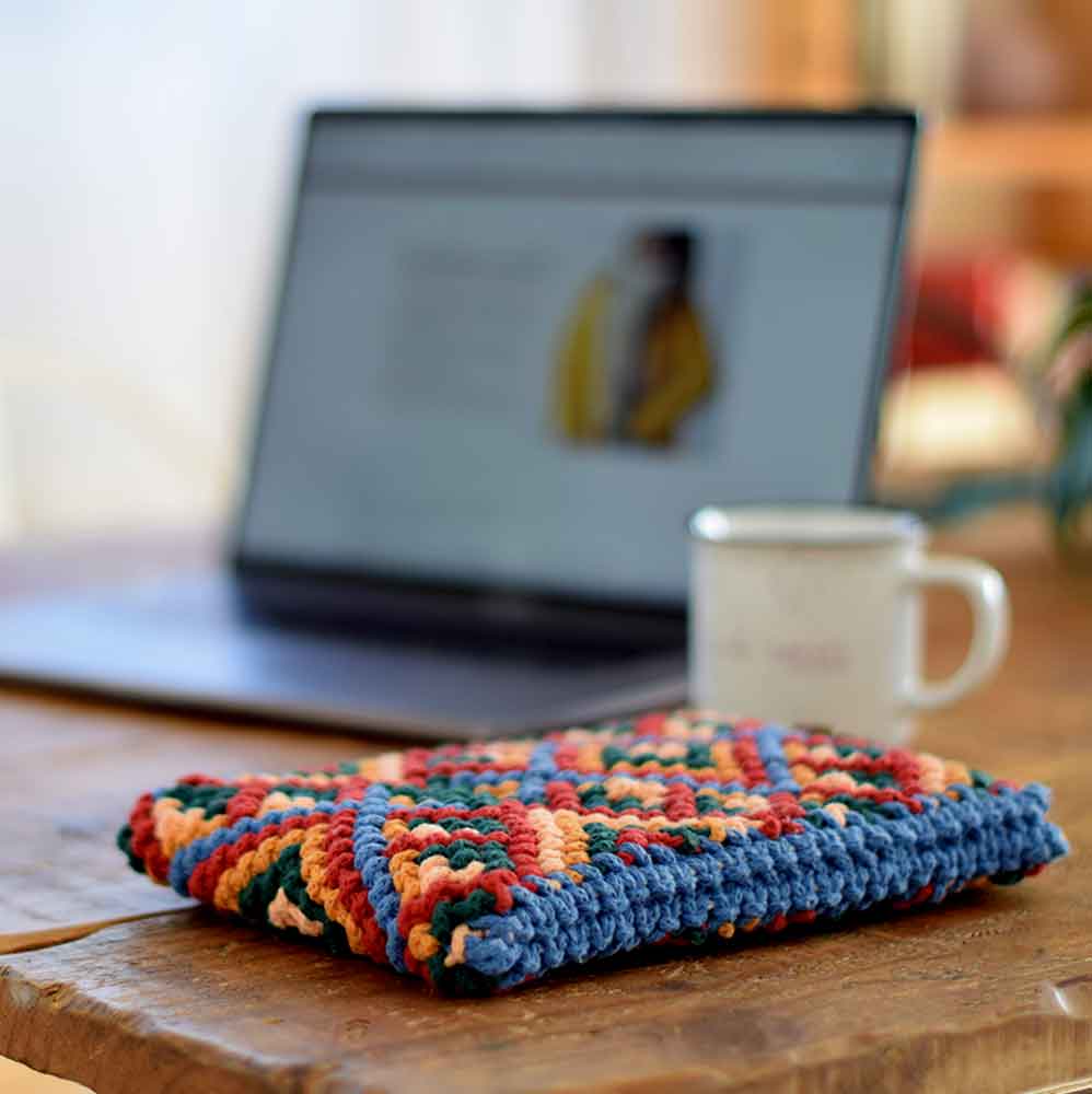 Este es un pack para comprar solo los mismos materiales, sin margen de error, que se utilizan en el Curso Online de Macramé Moderno de la Funda “Orizaba” para tabletas o dispositivos electrónicos.