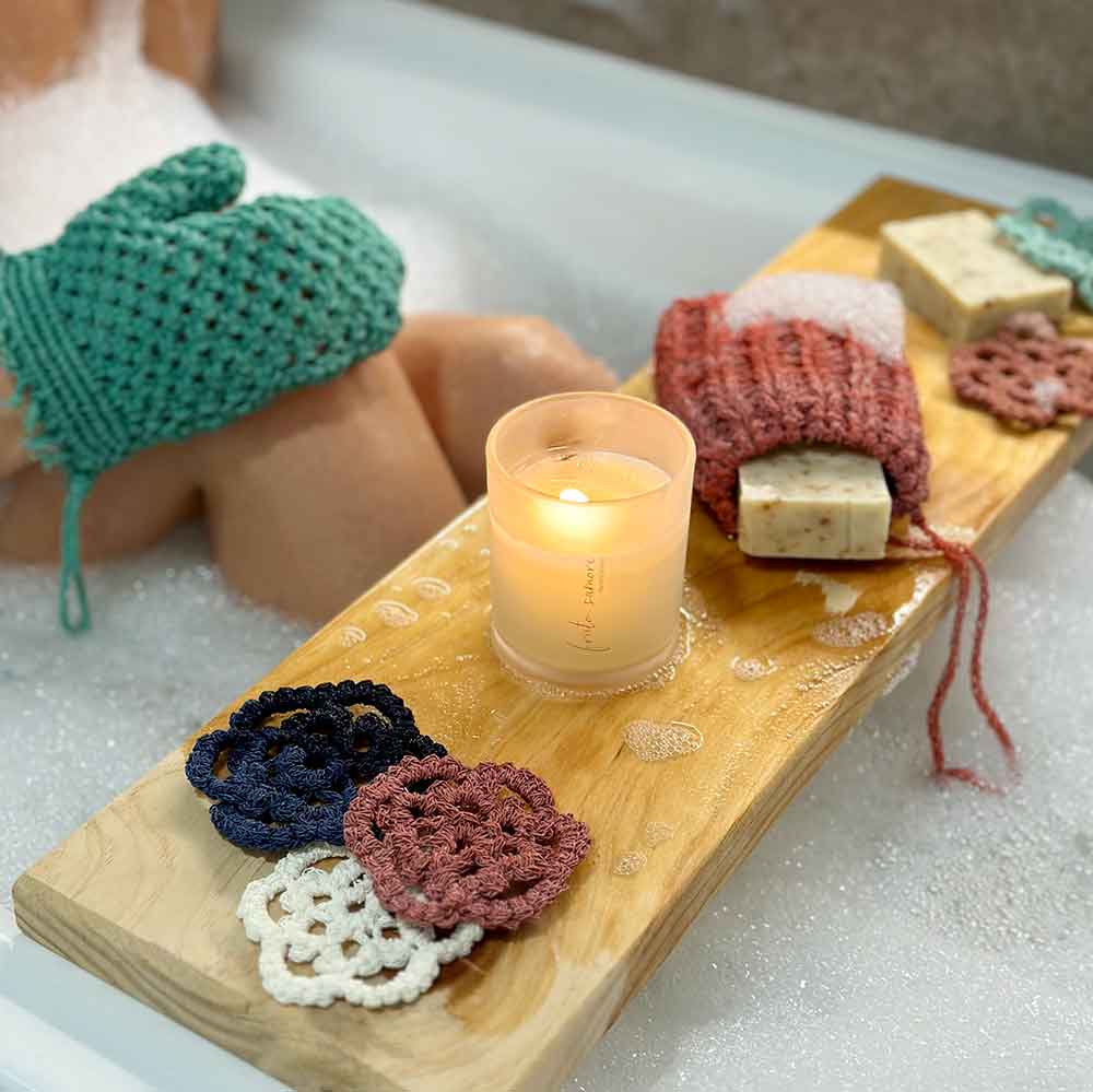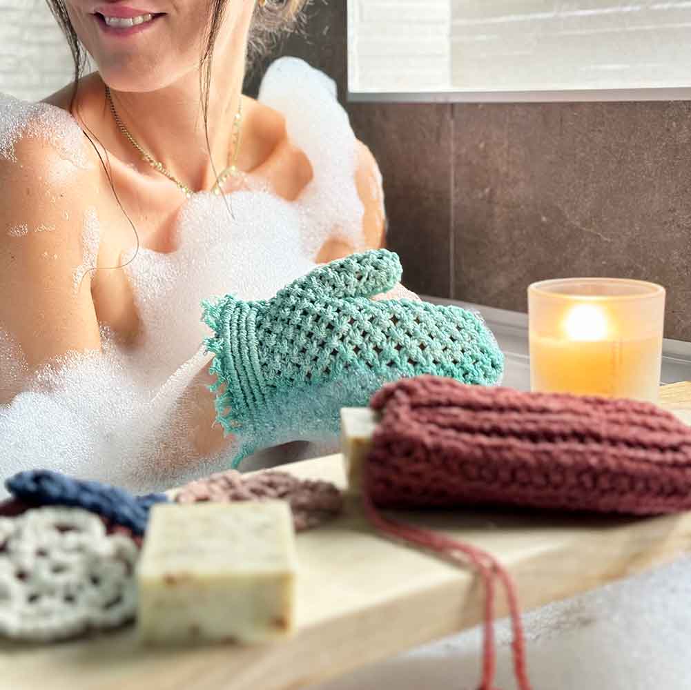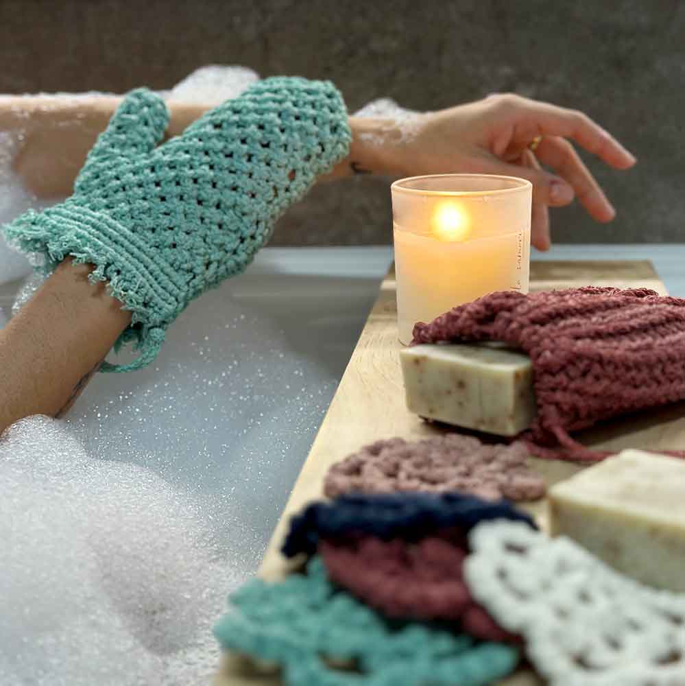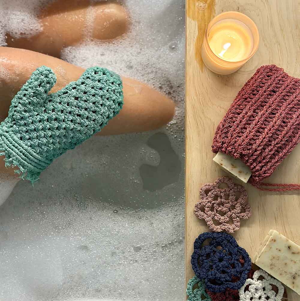 Nuestro hilo de papel reciclado, reconocido por su ligereza y durabilidad, resistente al agua, es el ingrediente perfecto para crear un kit de autocuidado totalmente sostenible.