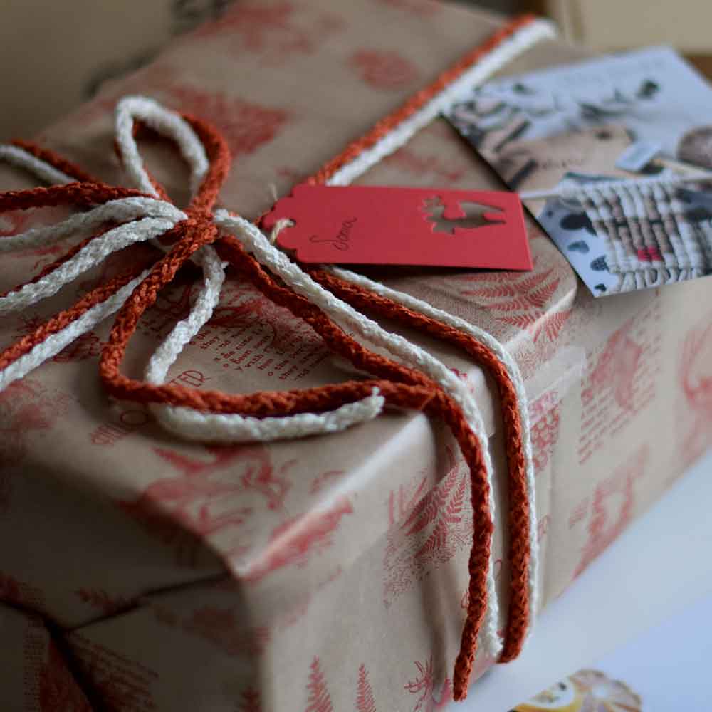 Con el pliego de papel regalo envolverás perfectamente cualquier caja de Fruto Samore que te llegará protegida de forma adicional para no estropearla con la etiqueta de la mensajería.