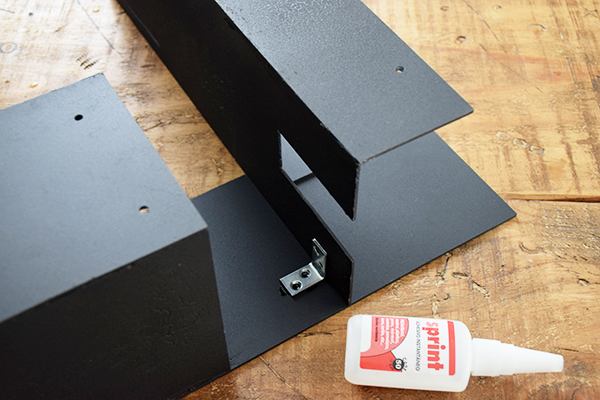 Y por ultimo uniremos los dos grupos de piezas. Para ello usaremos una escuadra y adhesivo instantáneo. ( en esta foto podreis ver donde he hecho los agujeros para fijar en la pared)