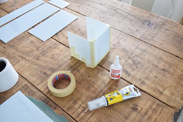 Con todas las piezas cortadas y pulidas con la lija podremos empezar a unirlas para crear la estructura. Lo mejor para unir este material es usar un adhesivo instantáneo y cinta de carrocero para fijar y posteriormente por todo su interior aplicar la cola turbo T-Rex , que es super fuerte parecida a la silicona. Con esto nuestra estructura sera irrompible! 🙂