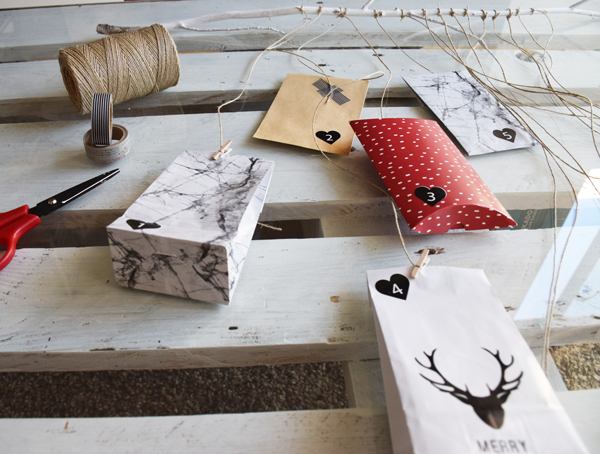 Algunas bolsas las he atado con pinzas y otras con washi tape de los mismos tonos. Todo lo he querido hacer con un aire nórdico al estilo de nuestra casa.