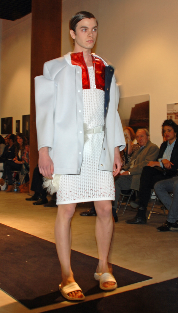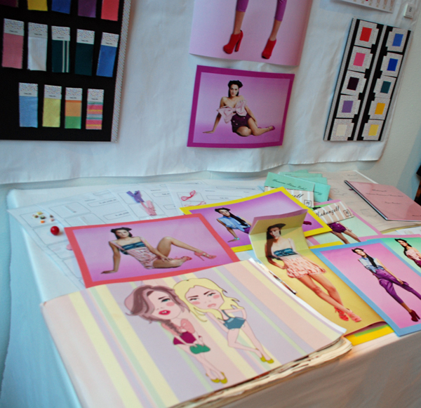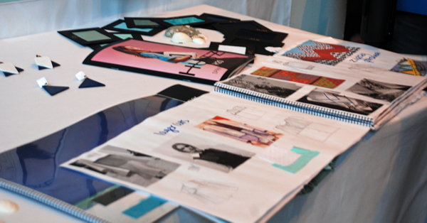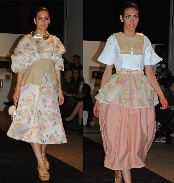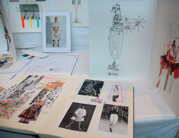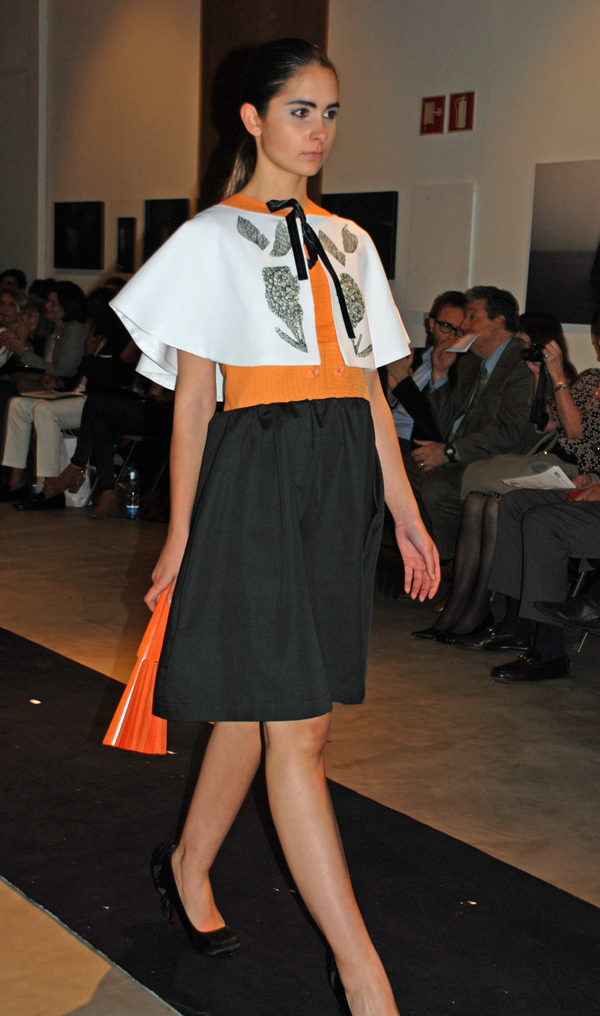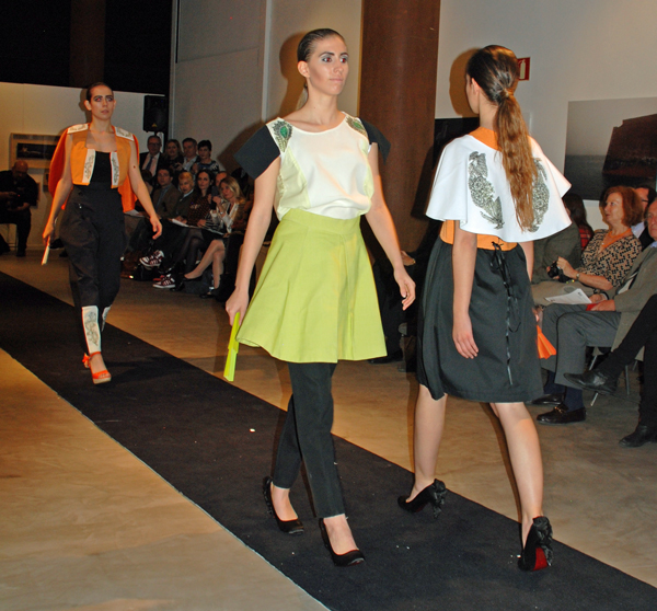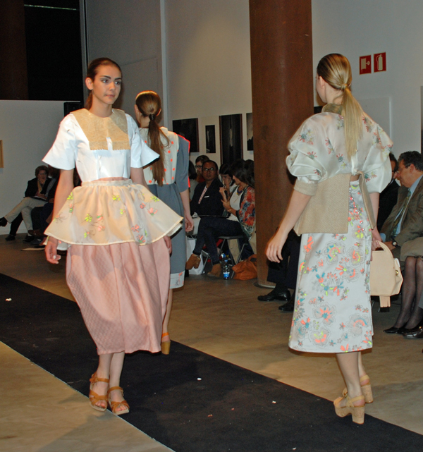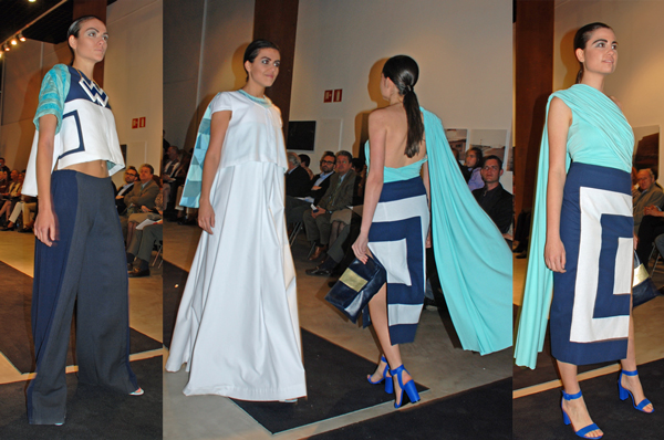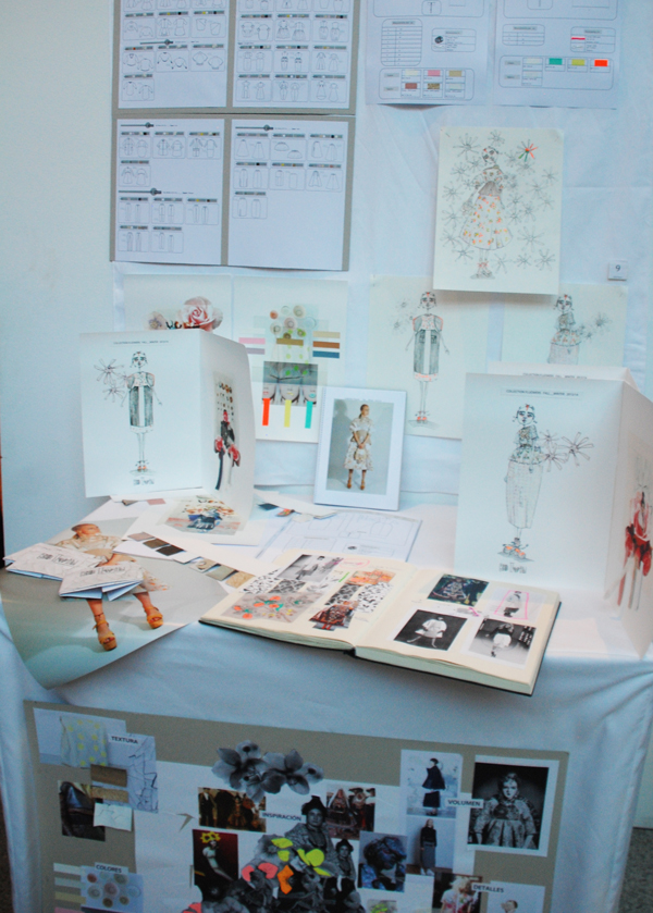 Primero los alumnos de esta primera promoción nos enseñaron en un shooting sus inspiraciones y cuadernos de referencia. Algunos con mayor o menor acierto, debido a los nervios….. (pobres….. yo me quedaría muda!) nos fueron explicando las bases de sus colecciones.