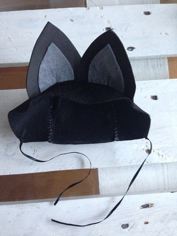 Solo nos quedan las orejas. Como un bebe no para quieto y odian las cosas en la cabeza…. opté por hacerle un casquete que se pudiera atar….. el fieltro es un material muy facil de cortar y coser y se pueden hacer autenticas virguerias aunque no seas un manitas….. así que de esta manera hice el casquete y le cosi las orejotas.