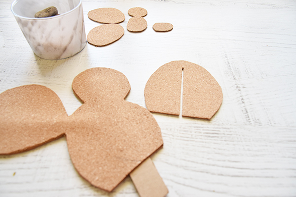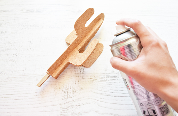 Pegamos bien las dos figuras y a la otra pieza le haremos una ranura para pasarla por la mitad del cactus, pegamos y pintamos con spray blanco.