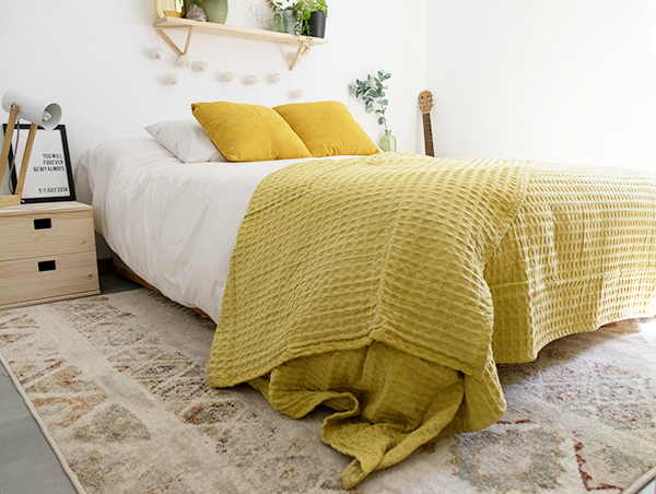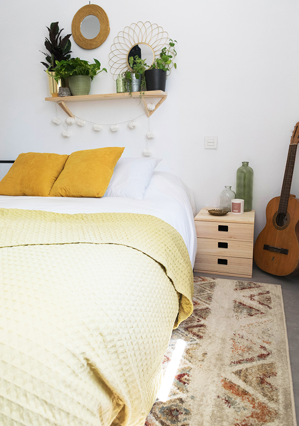 La alfombra es de Mundoalfombra, no puedo estar mas encantada con sus colores y como aporta calidez al dormitorio. Ademas su pelo me parece perfecto para todo el año, porque no es ni muy largo ni muy corto y no me da sensación de calor ahora en verano. Si tenéis dudas de como combinar una alfombra con un estilo concreto, podéis ver este post, donde os doy unos trucos y consejos para que os sea mas fácil 😉