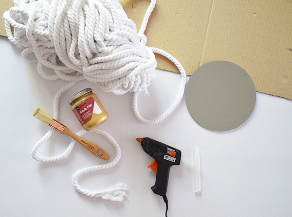 Vamos hacer un espejo con cuerda simulando un marco dorado y necesitaremos los siguientes materiales: