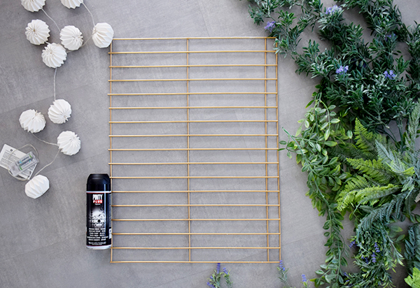 He reutilizado una vaya metálica que tenía por casa, mi amado spray de forja negra de PintyPlus , unas tijeras y opcional una guirnalda de luces.